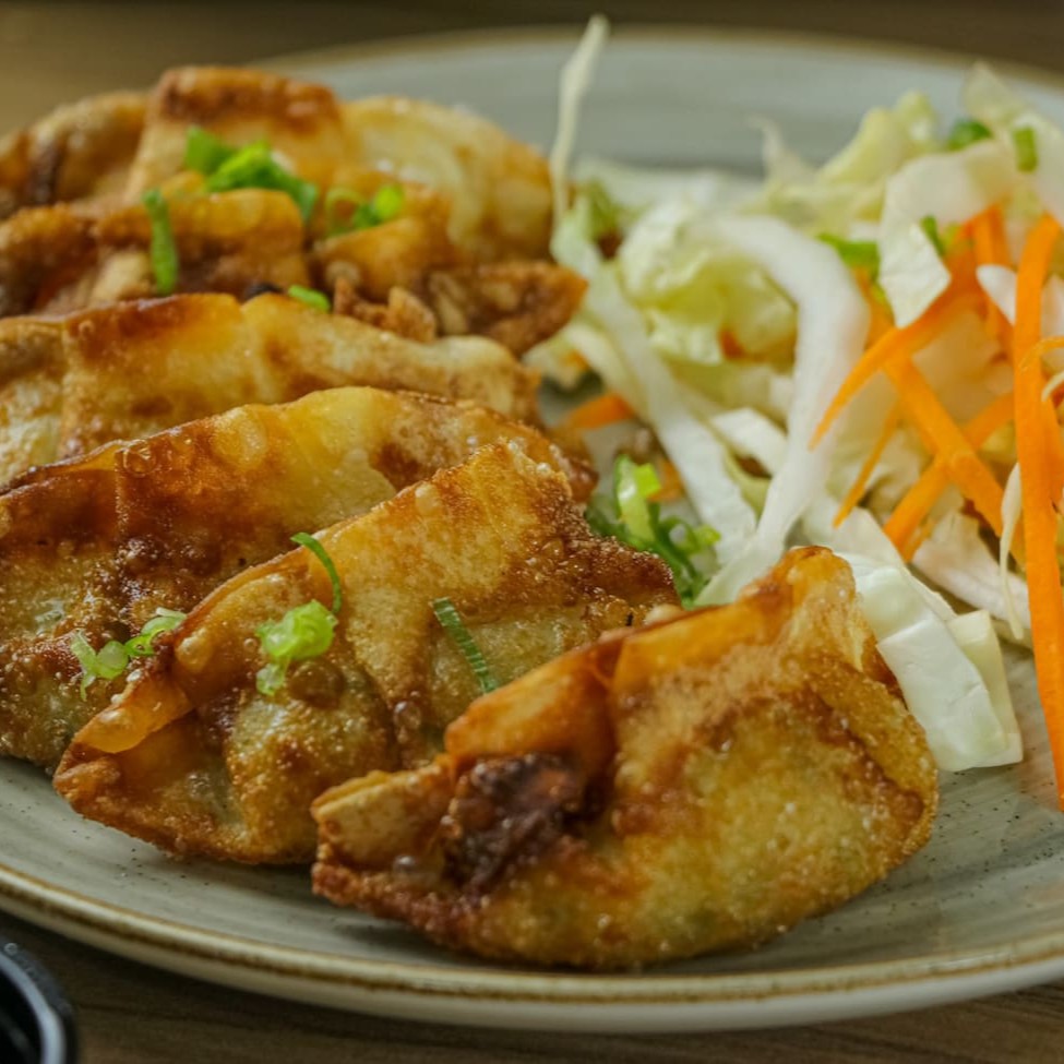 Deliciosas gyozas fritas com recheio suculento de carne suína. Crocantes por fora, macias por dentro — uma explosão de sabor em 6 unidades perfeitas para entrada ou petisco!