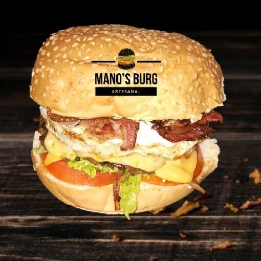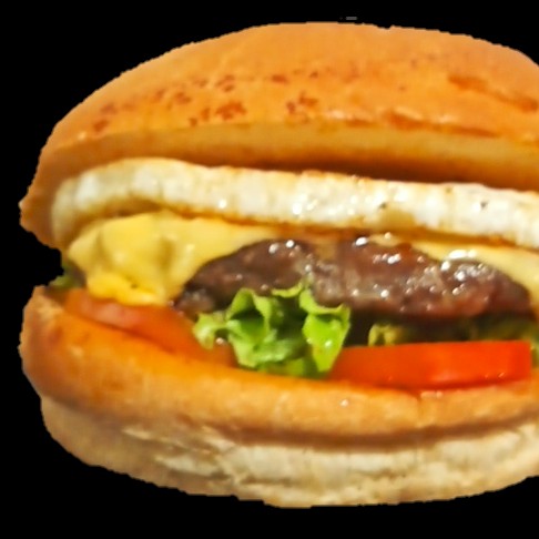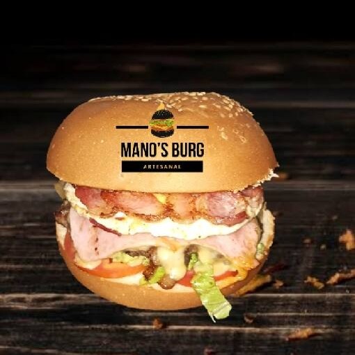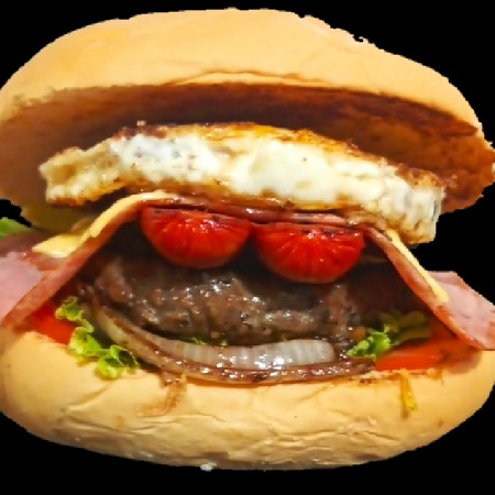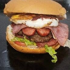 Hambúrguer artesanal,bacon, ovo, queijo prato, tomate, cebola, alface