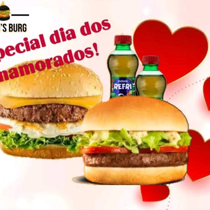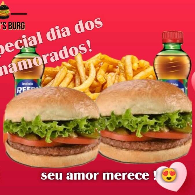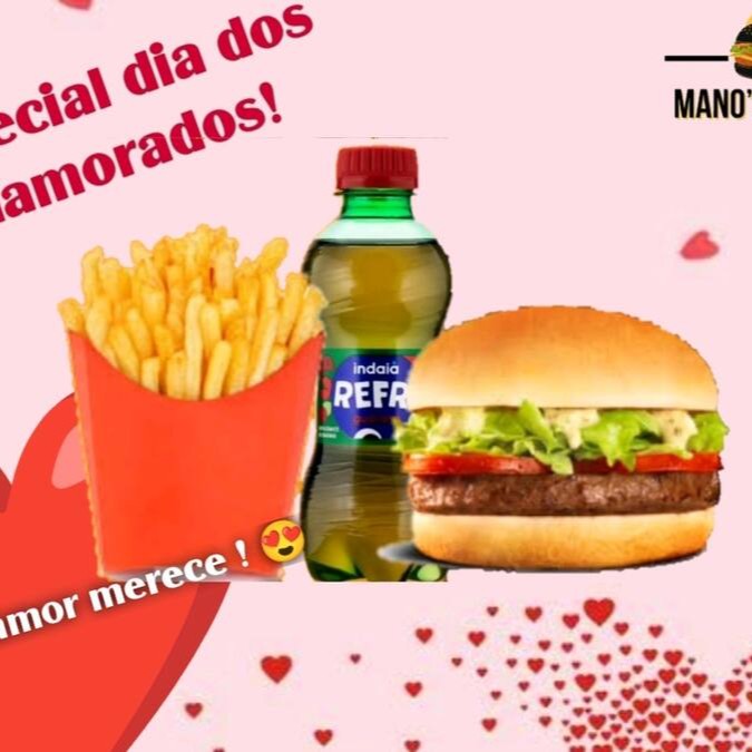 Para presentear a pessoa amada esse combo e ideal, acompanhar 1 x burguer (carne artesanal,queijo,salada) 150gr de fritas e 1 refrigerante por um preço especial para o Dia