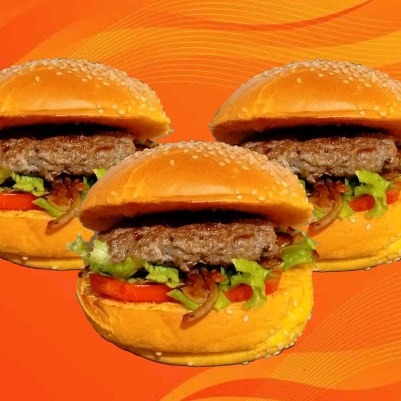 3 hambúrguer artesanal 60g ( pão bola, artesanal 60g,tomate cebola frita e alface)