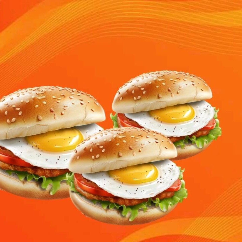 3 egg burguer 60g ( pão bola, artesanal 60g, ovo, tomate, cebola frita e alface)
