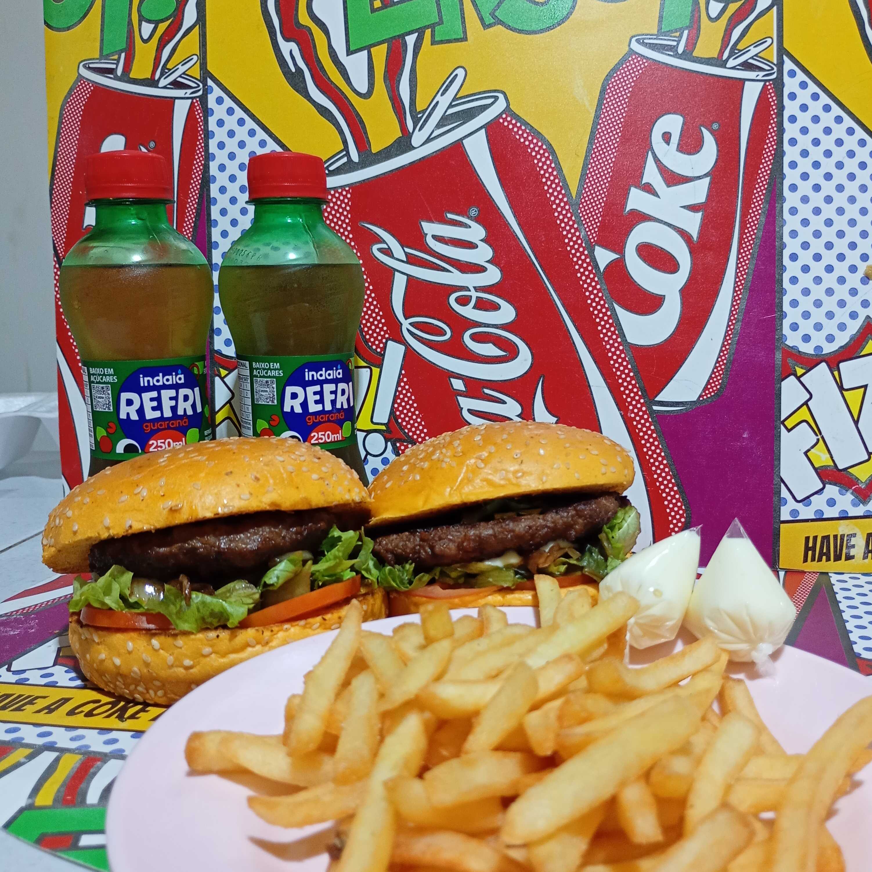 Combo Nós Dois ( 2 Hambúrguer Artesanal 100gr+ Fritas+ 2 Refrigerante)