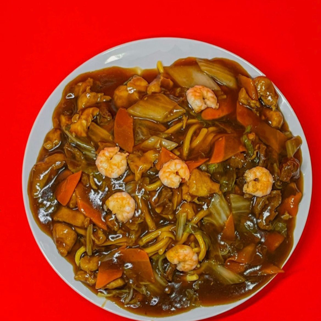 MACARRÃO CHINÊS,CARNE,FRANGO, LEGUMES(PIMENTAO ACELGA E CENOURA) CAMARÃO)
