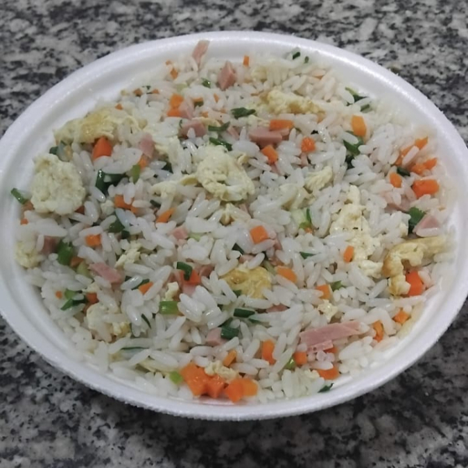 ARROZ COM CEBOLINHA CENOURA OVOS E PRESUNTO.