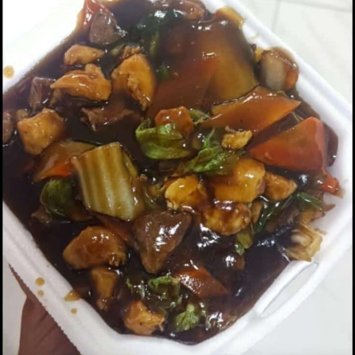 (MACARRÃO CHINÊS,CARNE, FRANGO E LEGUMES(ACELGA PIMENTAO CENOURA) AO SHOYO