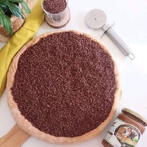 Apresentamos a nossa irresistível pizza de Brigadeiro da categoria 'Pizzas Doces'. Com uma massa fina e crocante, coberta com uma generosa camada de chocolate derretido de alta qualidade. Para finalizar, acrescentamos um toque alegre de granulado colorido. Esta pizza é um deleite de dar água na boca para os amantes de chocolate e uma maravilhosa maneira de encerrar a sua refeição em grande estilo. Uma explosão de sabor a cada mordida.