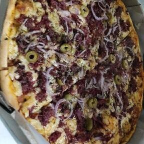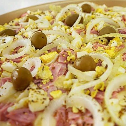 Deliciosa pizza grande, servindo 8 generosas fatias. Sua base é uma massa artesanal, leve e crocante. Coberta com nosso molho especial, uma receita exclusiva que adiciona um sabor único e irresistível. Cobrimos a massa com uma generosa camada de mussarela derretida, que cria uma textura suave e cremosa. A pizza é finalizada com cebolas frescas e crocantes, azeitonas saborosas e um toque de orégano para realçar todos os sabores. Uma verdadeira delícia italiana pronta para ser desfrutada!
