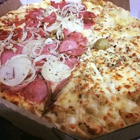 Molho Especial Italiano, Mussarela Premium Argentina, Frango, Lombo, Cebola, Orégano, Azeitonas, Cheddar Nas Bordas. (Muito Recheio)