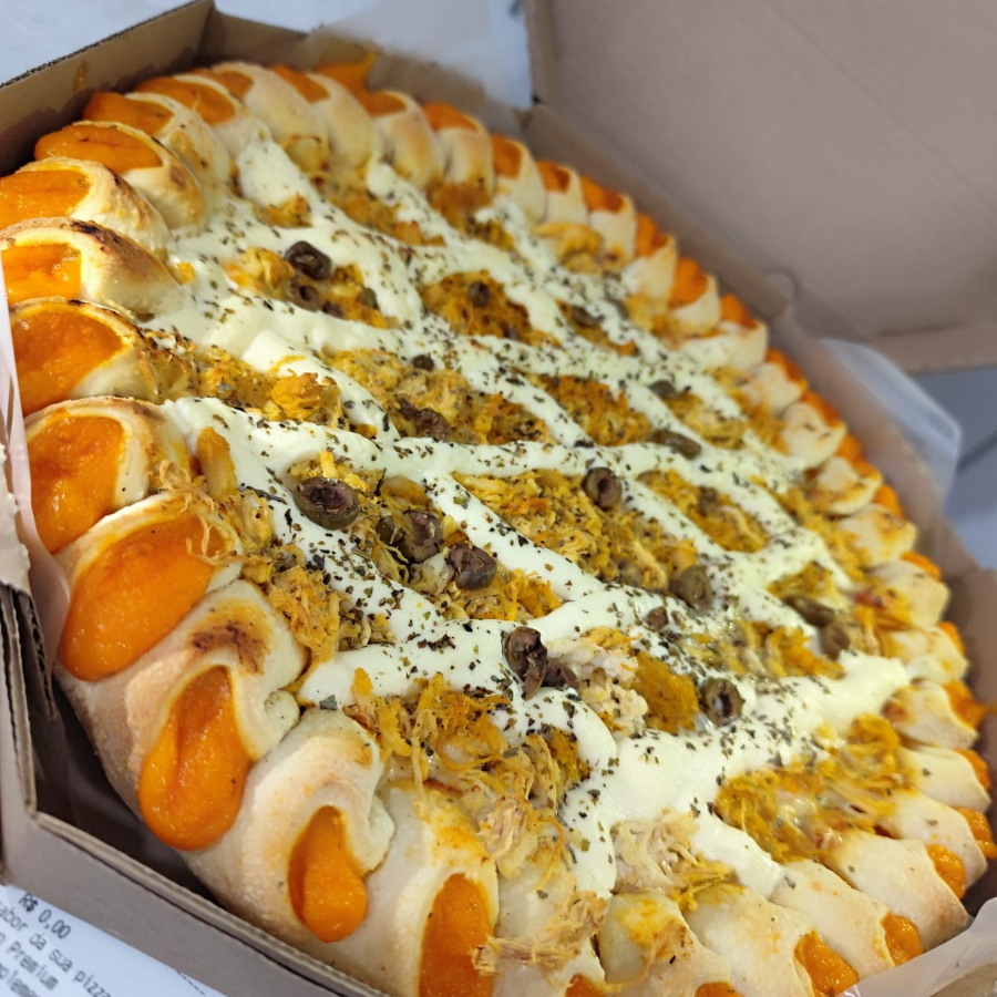 Molho Especial Italiano, Mussarela Argentina Premium, Muita Calabresa, Muito Frango, Cebola, Azeitonas, Orégano, E Bordas Flex Catupiry E Cheddar.