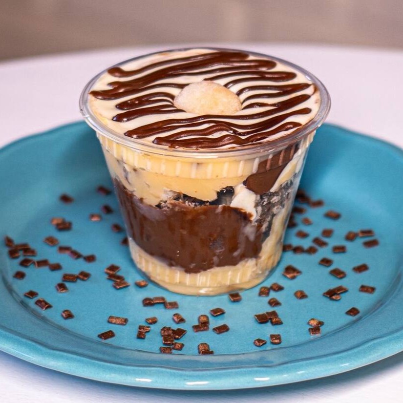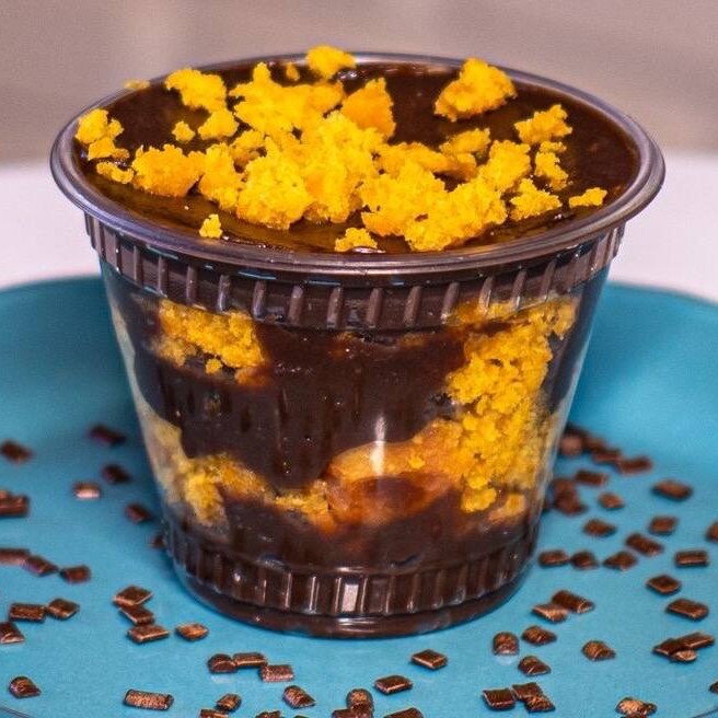 Mais uma versão do prefeito dos clientes da Maria Boleria. Nosso bolo campeão de vendas na versão desconstruída. O nome copo da felicidade não é à toa. Muitoo recheio de chocolate 50% com pedaços da nossa massa de bolo de cenoura.