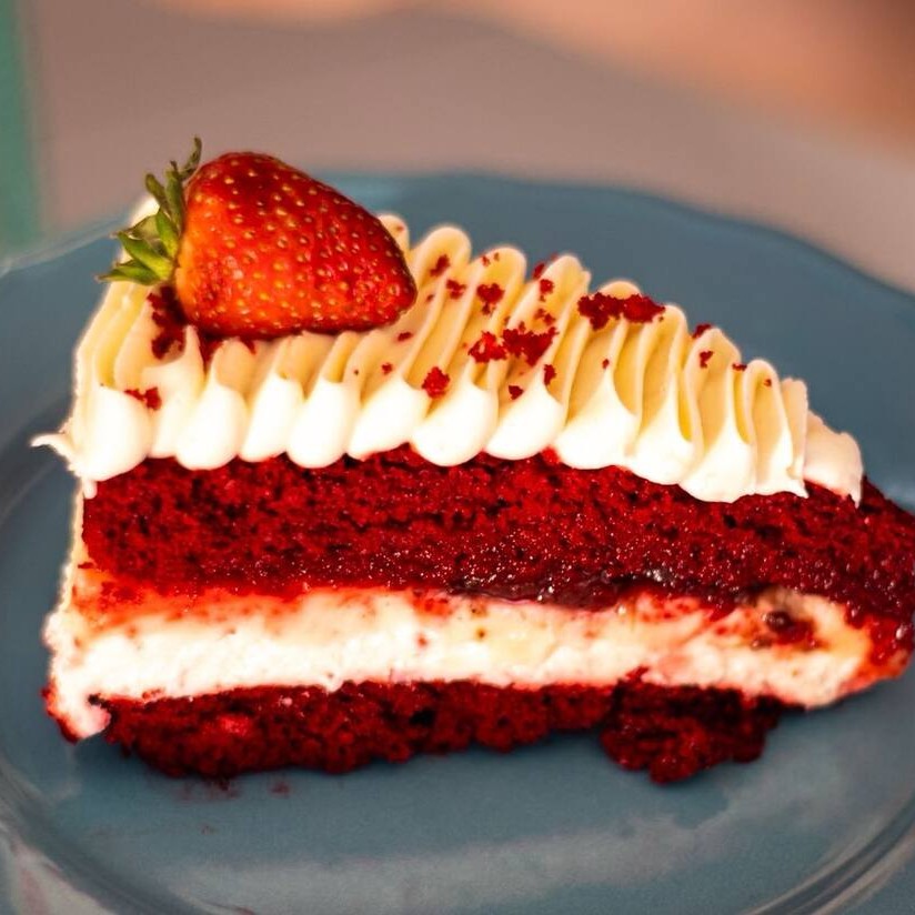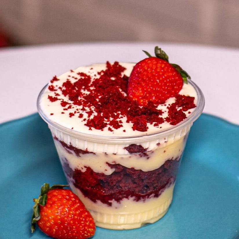 A verdadeira massa aveludada dos Eua, com recheio de brigadeiro de cream cheese, geleia de morango artesanal, finalizado com mousse de leite Ninho. A combinação perfeita pra quem ama um doce e o azedinho pra quebrar.