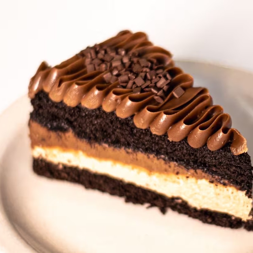 Para os amantes de chocolate, opção perfeita. Uma fatia de chocolate, feita com a nossa massa de cacau black 100%, recheada com uma camada do nosso creme de chocolate e outra camada de mousse de chocolate. A nº 1 da Maria Boleria.