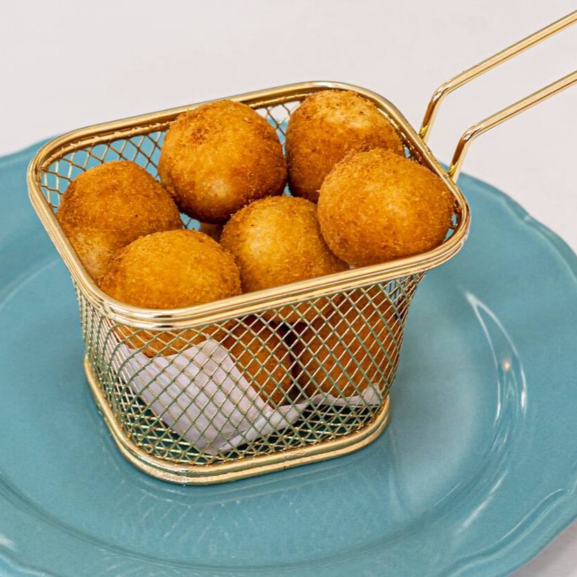10 mini bolinhos de queijo quentinhos, fritos na hora.