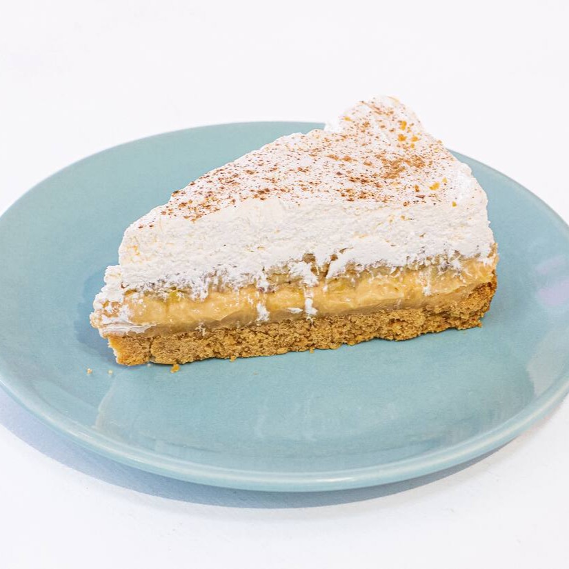 Tradicional torta Banoffee, com uma camada de massa de biscoito, com uma deliciosa cobertura de doce de leite, uma camada de banana frita na manteiga, finalizada com chantininho e canela polvilhada pra dar o toque especial. Perfeita combinação de texturas e sabor irresistível