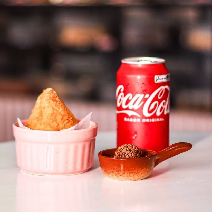 Uma coxinha de frango + 1 refri lata 350ml + 1 brigadeiro. Não alteramos os combos.