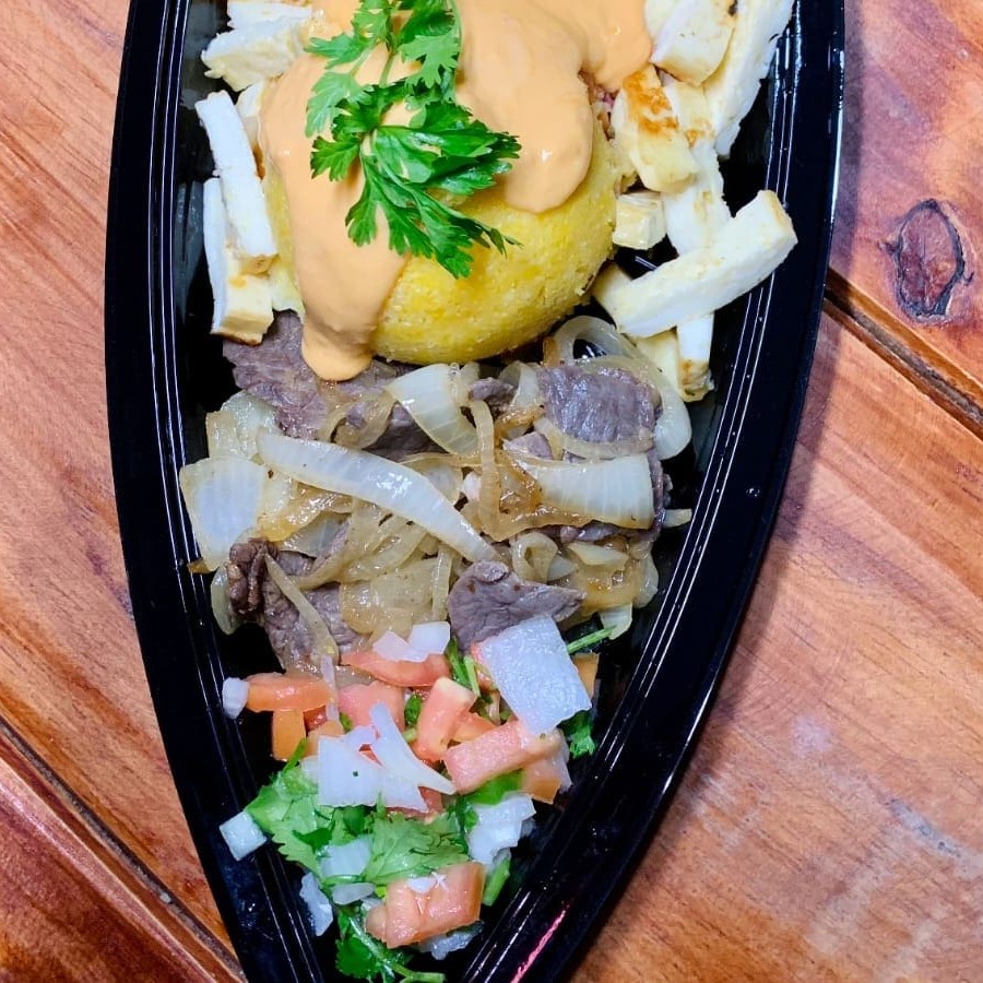 Deliciosa Macaxeira, Macia e Suculenta acompanhada de Carne de Sol Premium Acebolada, Coberta com uma Espetacular Manteiga de Garrafa Especial e Finalizada por Queijo Coalho de Primeira Qualidade. Vai Pedir ou Ficar Babando?? Peso Aproximado de 1kg