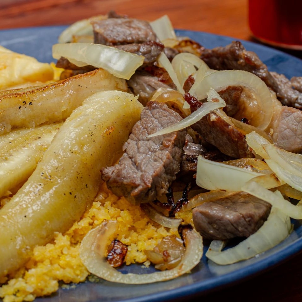 Mega Cuscuz, Banana Frita E Carne De Sol Assada