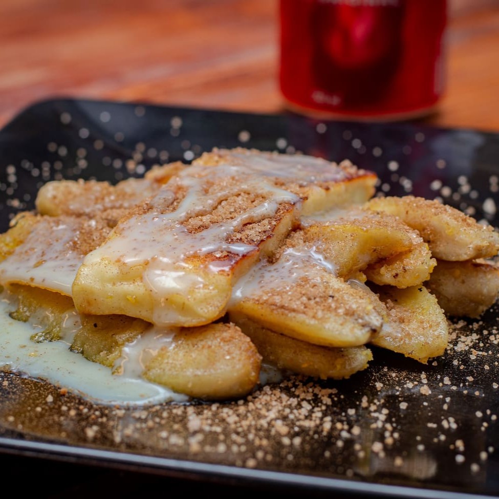 Apresentamos a nossa deliciosa Cartola, uma verdadeira obra-prima da culinária. Este prato é composto por suculentas Bananas Prata, meticulosamente selecionadas e perfeitamente combinadas com um generoso pedaço de Queijo Coalho. Tudo isso é graciosamente assado na autêntica Manteiga de Garrafa, revelando sabores intensos e únicos. A cereja do bolo é a cobertura com Açúcar e Canela Supreme, cuidadosamente caramelizados para adicionar uma doce crocância. Para finalizar, um toque especial de Leite Moça é adicionado, elevando a sobremesa a um novo patamar de sabor. É a escolha perfeita para fechar uma refeição em grande estilo. Experimente!