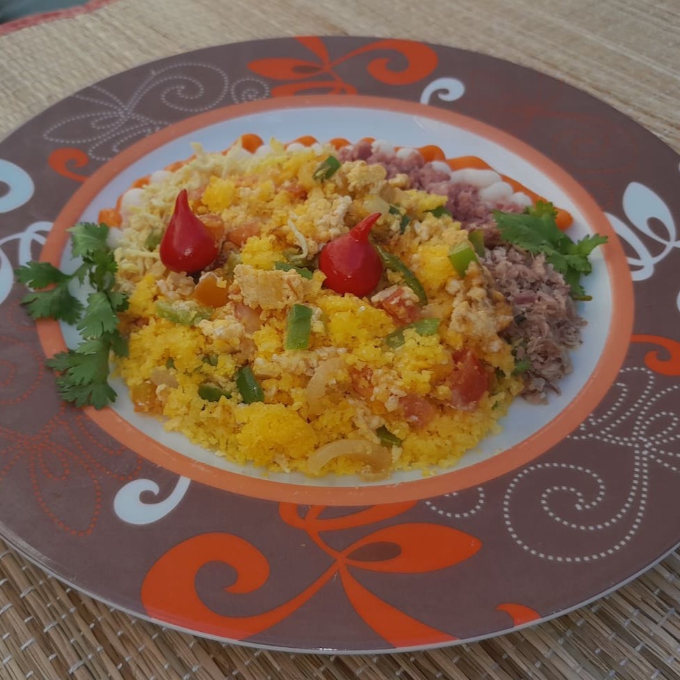 Cuscuz Soltinho Com Verduras Refolgadas, Ovos Fritos E Recheios A Sua Escolha