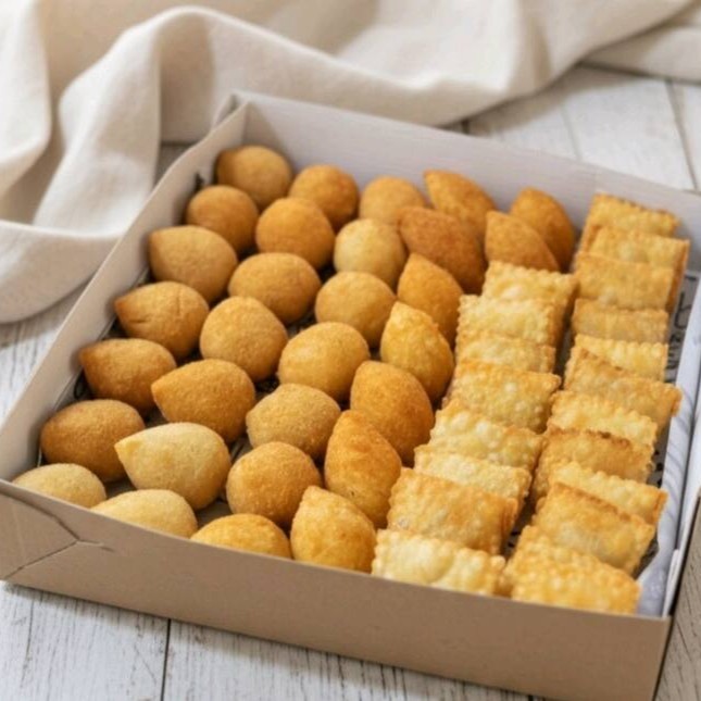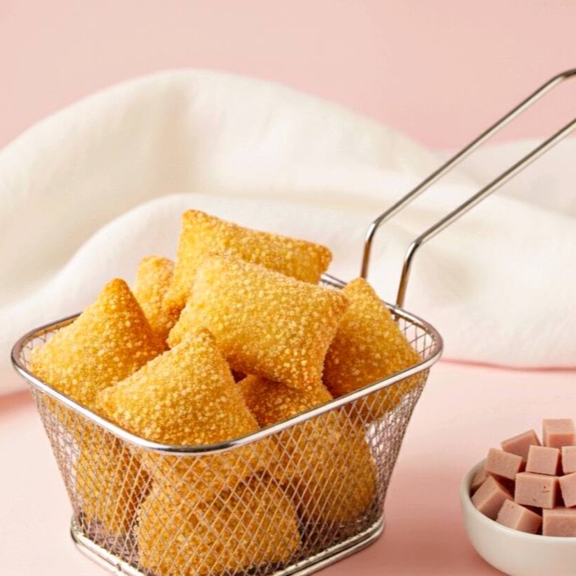 Porção com 25und. Massa super macia, a base de leite e batata recheada com queijo e presunto. Nossos salgados são fritos em gordura de algodão para proporcionar melhor qualidade e sabor ao produto final. "Todos os nossos salgados são fritos no momento do pedido"