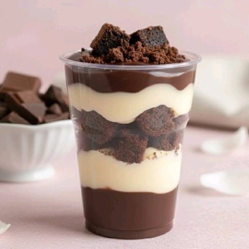 Copo 200ml. Feito com creme de chocolate meio amargo, creme de Ninho e pedados de brownie.