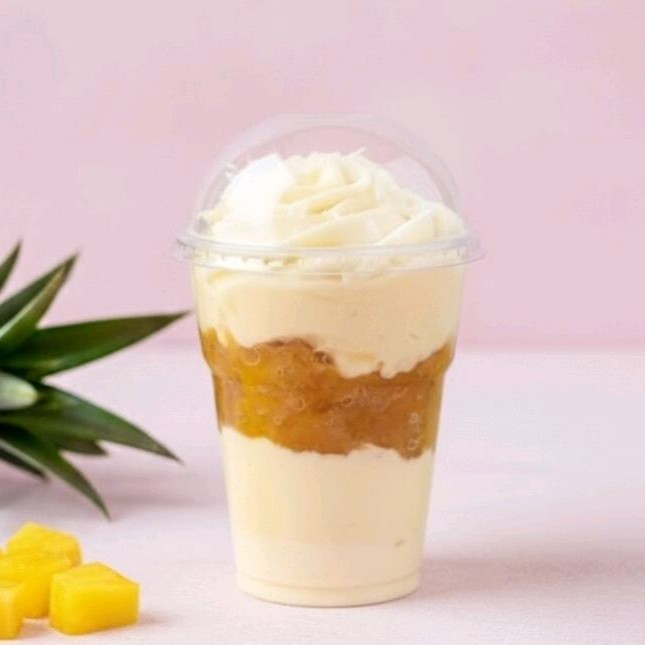 Copo de 200ml. Composto por um creme de Ninho, um mouse maravilhoso de Ninho que desmancha na boca e nosso doce artesanal de abacaxi.