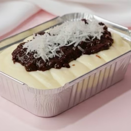 Feito na marmita de 220ml. Massa branca, super fofinha e molhadinha, do jeito que a gente gosta. Cobertura cremosa de brigadeiro branco, doce artesanal de Ameixa e finalizado com coco. Peso médio 220gr.