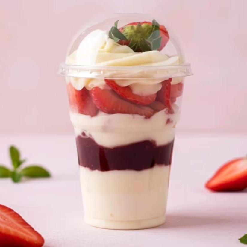 Feito em copo de 200ml. Feito com um creme de Ninho, brigadeiro super cremoso de Ninho e uma combinação deliciosa de geleia artesanal de morango e morangos frescos. Finalizado com creme de brigadeiro.