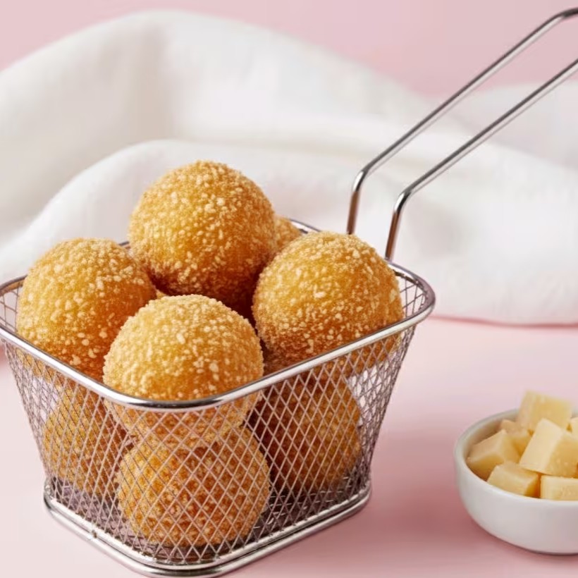 Porção de 15und de bolinha de queijo, Peso médio de22gr, empanadas na farinha Panko e fritas no momento do pedido.