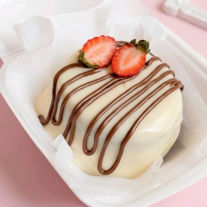Feito em forma de 9cm. Massa de chocolate, com uma cobertura super cremoso de brigadeiro de Ninho, finalizado com Nutella e morango fresco.
