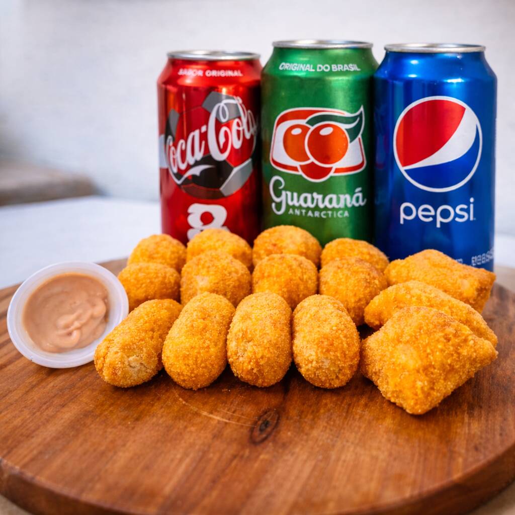 20 salgados (até 3 sabores) 2 refrigerantes 200 ml