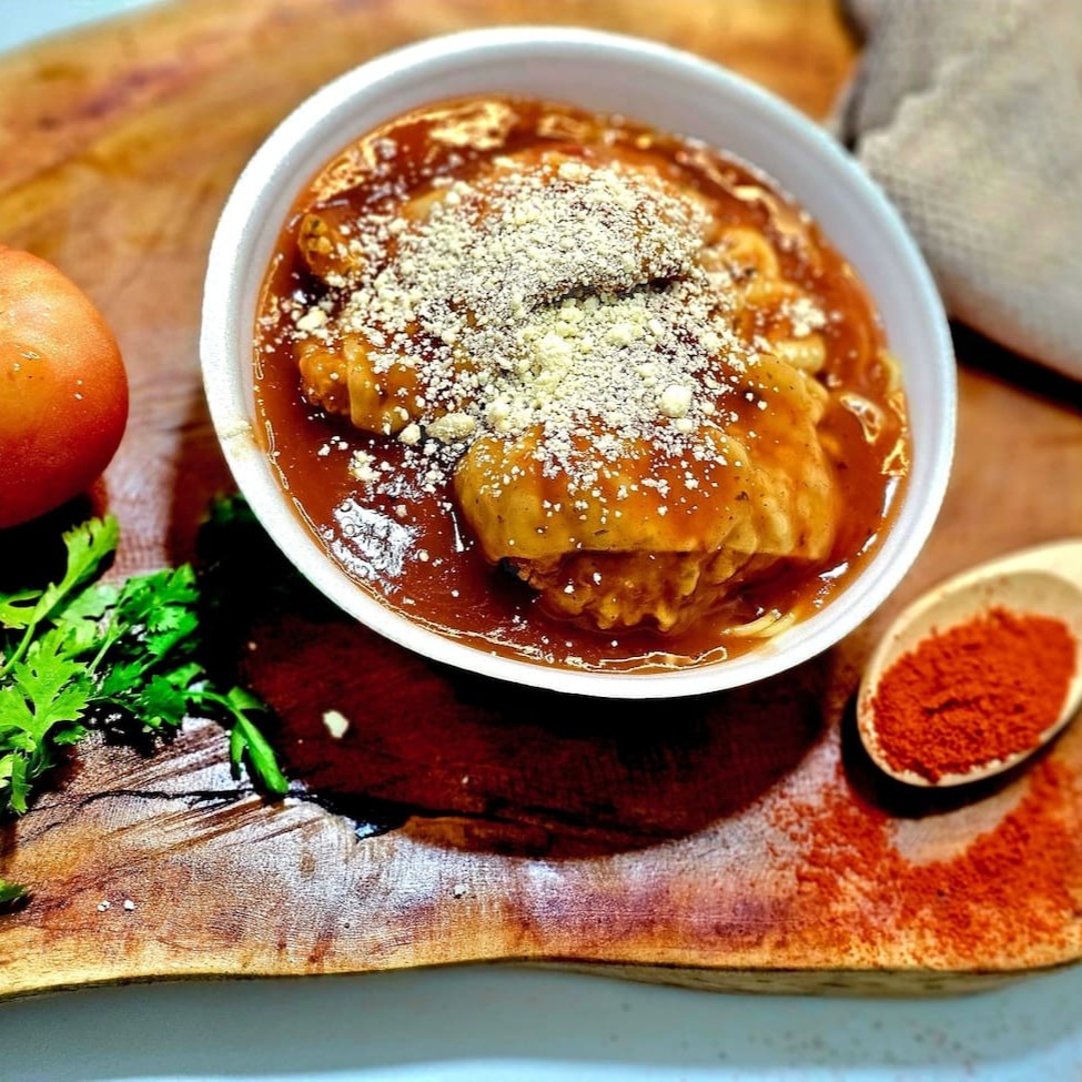 Experimente nossa deliciosa panqueca recheada com frango desfiado e acompanhada de arroz, macarrão temperado e feijão preto ou mulato. Uma combinação irresistível de sabores para saciar sua fome!