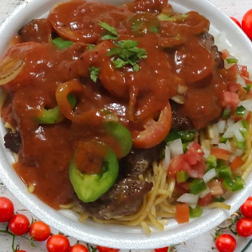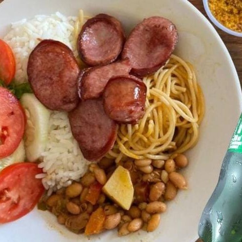 Delicioso calabresa acebolada, acompanha feijão mulato,arroz, macarrão, vinagrete, farofa. (400g )