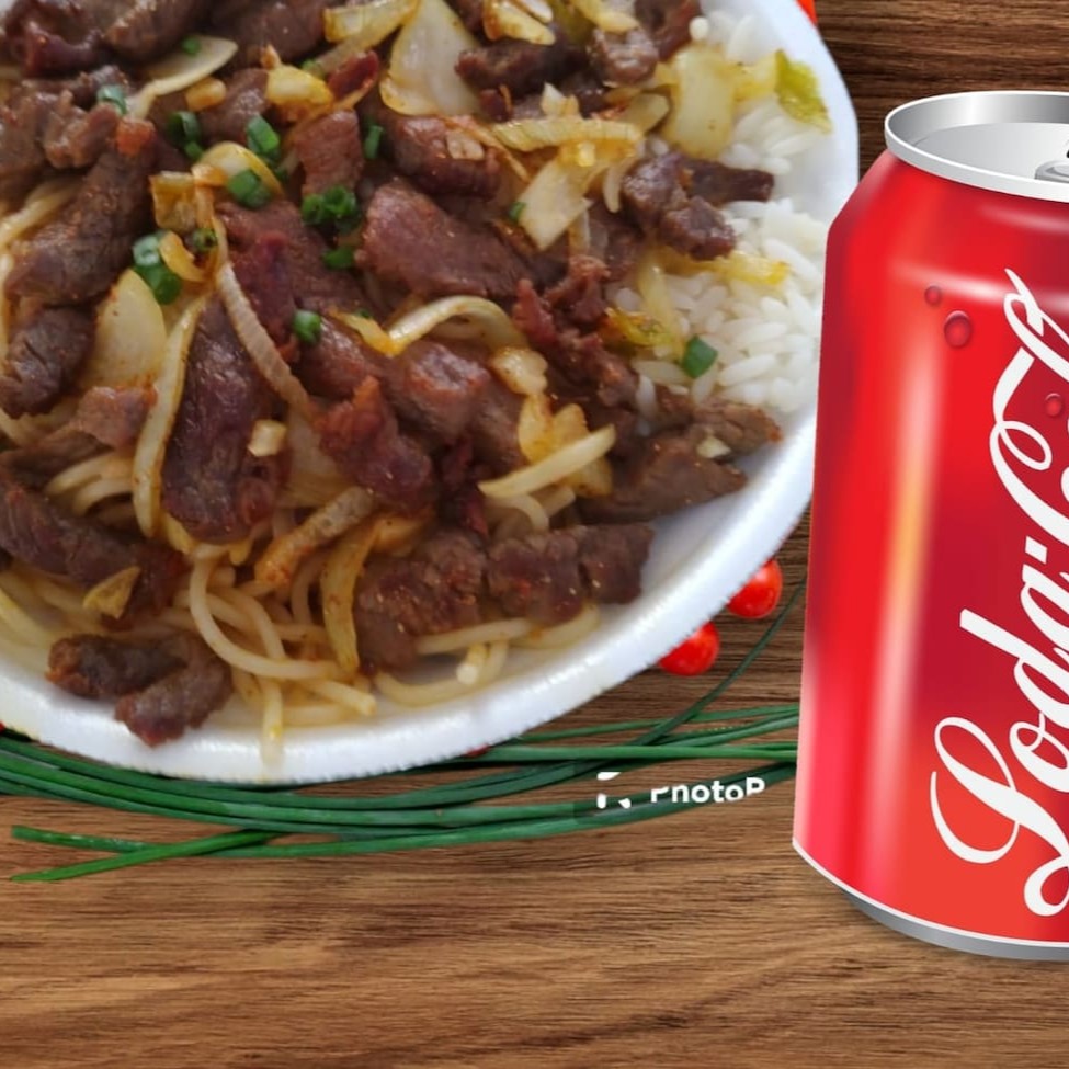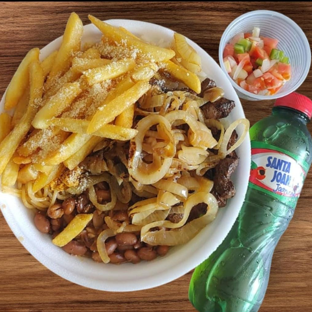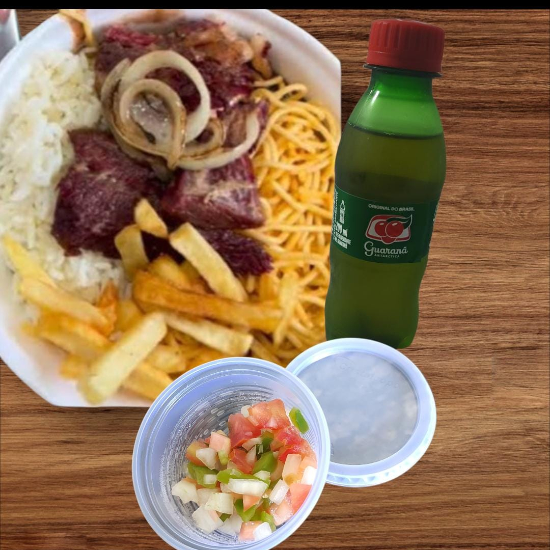 Charque Acebolada+ Batata Frita + Refrigerante 200ml