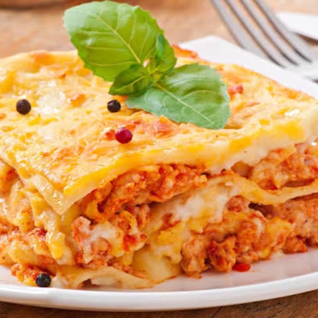 Lasanha de frango bem recheada, com camadas generosas de massa fresca, molho caseiro e frango desfiado temperado no ponto certo, tudo gratinado com queijo derretendo por cima. Acompanhada de uma Coca-Cola gelada pra completar a explosão de sabor. Irresistível!