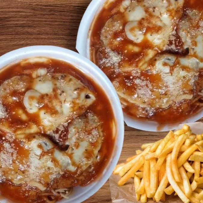 Uma deliciosa Marmita de Filezinho de Frango 3 pedaços frito coberto com Um delicioso molho de queijo por cima. Para quem ama comer bem e pagar pouco.