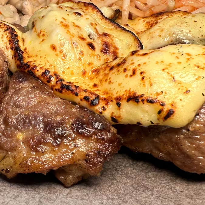 2 almoços de cupim gold na parrilla finalizada com queijo coalho de primeira. Acompanha feijão macassar, arroz e spaghetti ao pomodoro artesanal.