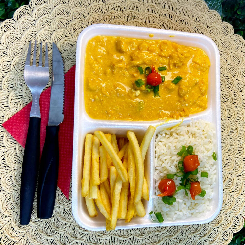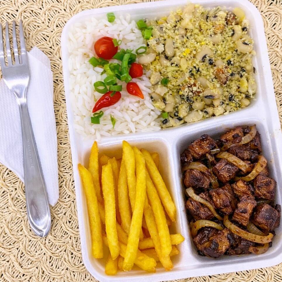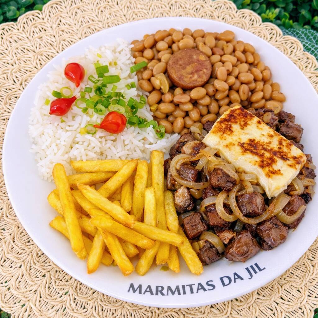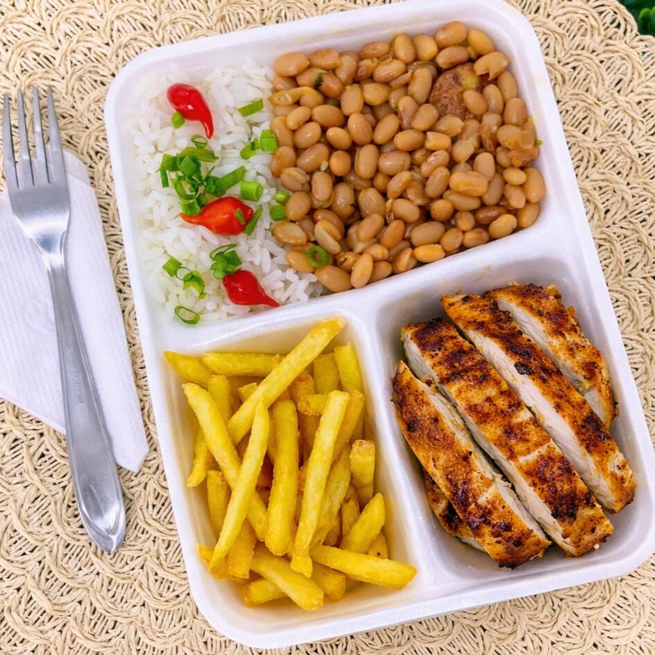 Marmita completa com arroz branco soltinho, feijão temperado com farofa crocante, frango grelhado suculento e bem dourado, acompanhado de batata frita crocante. Acompanha 1 Guaraná Antarctica caçulinha 200 ml bem gelado. Uma refeição equilibrada, saborosa e perfeita para o dia a dia.