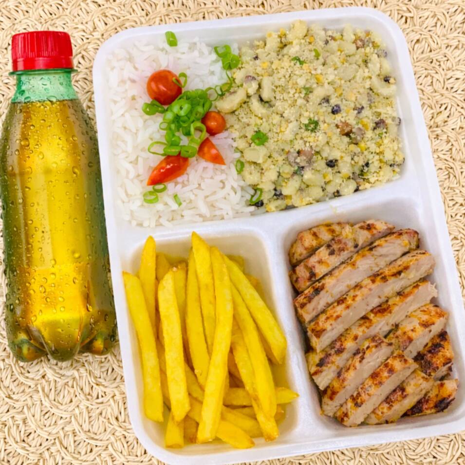 Frango Em Cubos Na Chapa ( Feijão Tropeiro -arroz - Batata ) + Refrigerante 200 Ml
