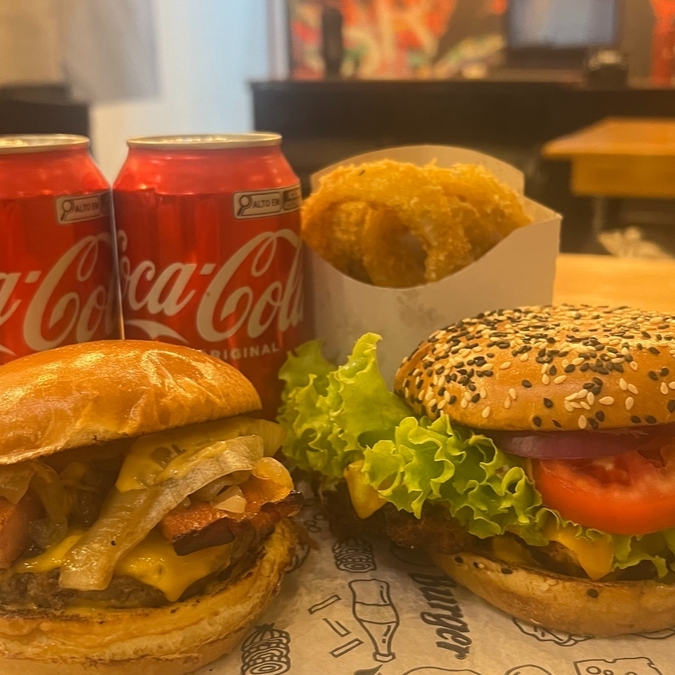 Inclui 2 hambúrgueres, 1 acompanhamento e 2 latas de refrigerante. Uma combinação deliciosa e perfeita para compartilhar com amigos ou saborear sozinho. Aproveite essa refeição prática e saborosa!