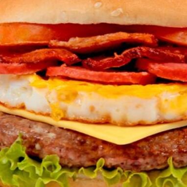 Carne de hambúrguer, cebola chapeada ao barbecue , bacon, queijo coalho, alface e molho especial heimer.