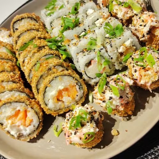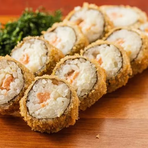 12 peças de sushi crocante com recheio de salmão ou camarão ou kani ou skin. Acompanha um shoyo, hashi e um tarê.