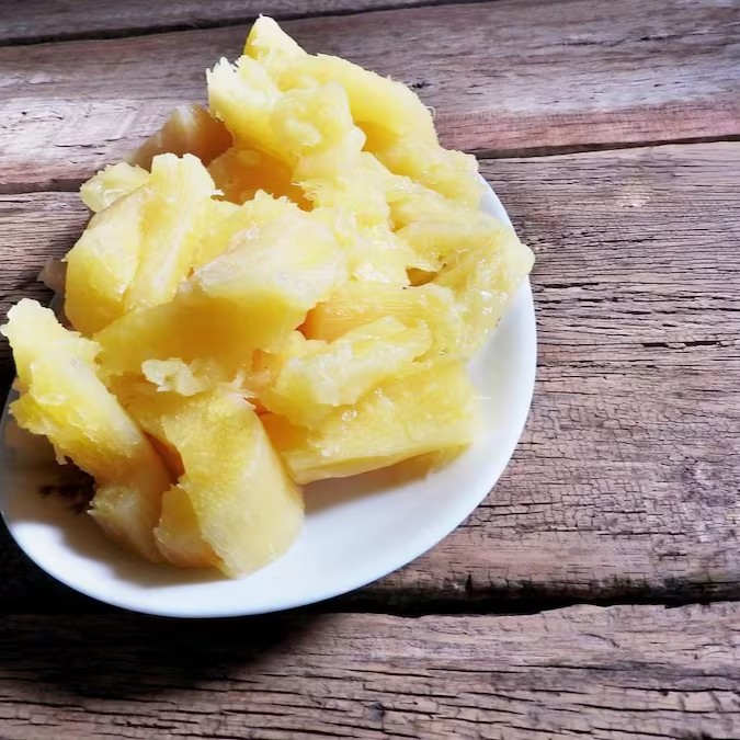 Frango em cubos, pão assado, maionese caseira e alho especial