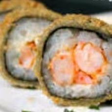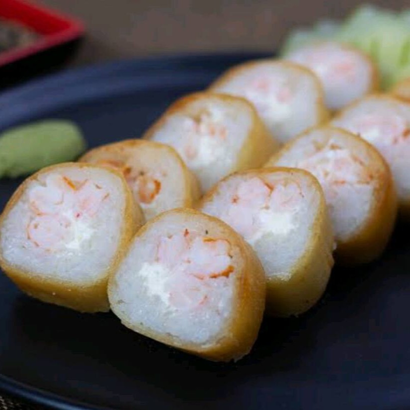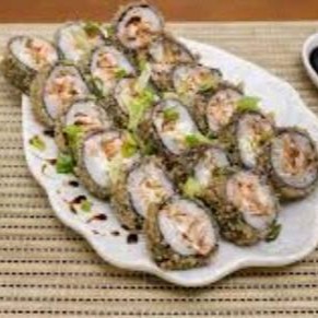 Alga,arroz,creme cheese e camarão empanado na farinha panko