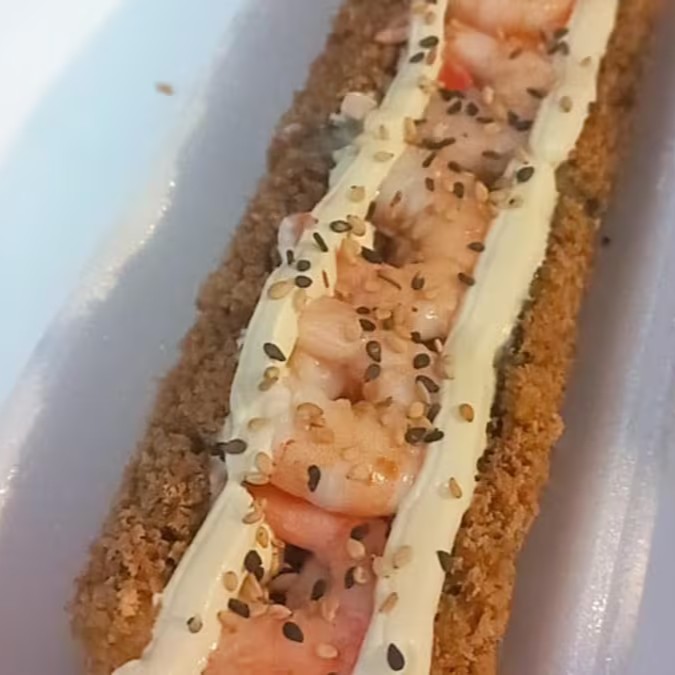 10 Pecas De Carioca De Camarao E 1 Mini Temaki De Camarao Frito