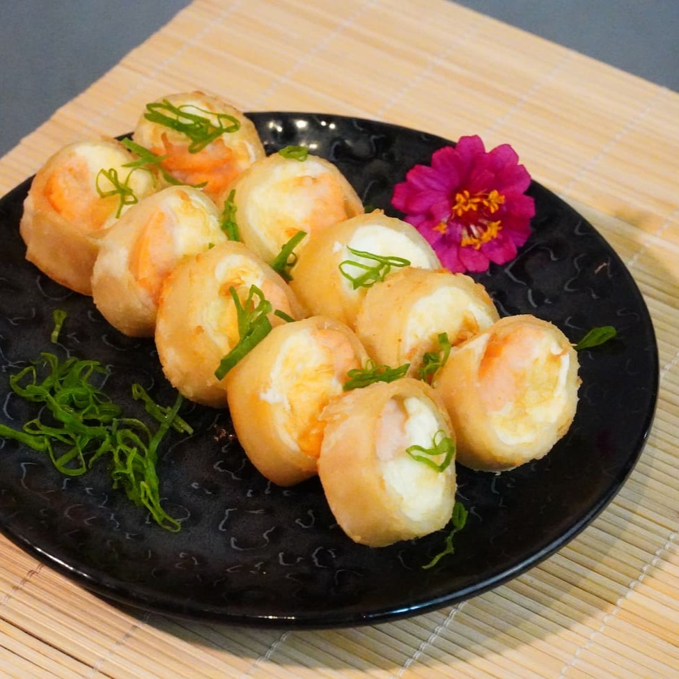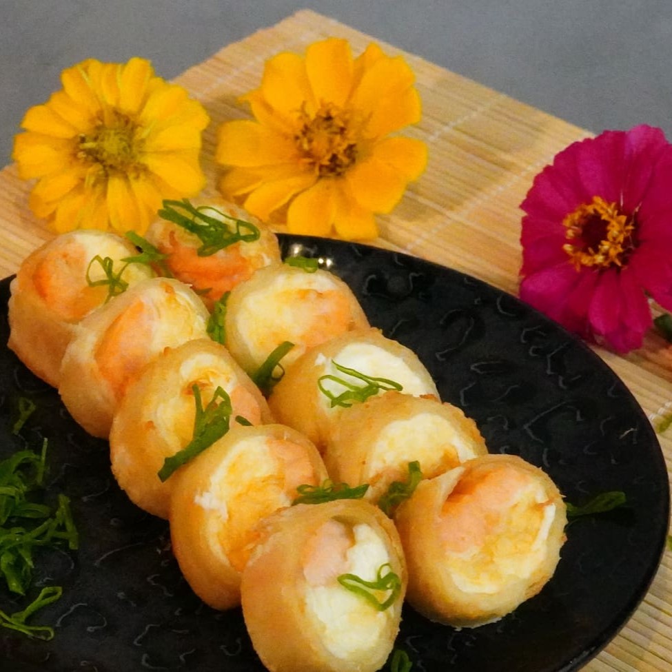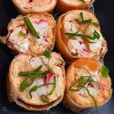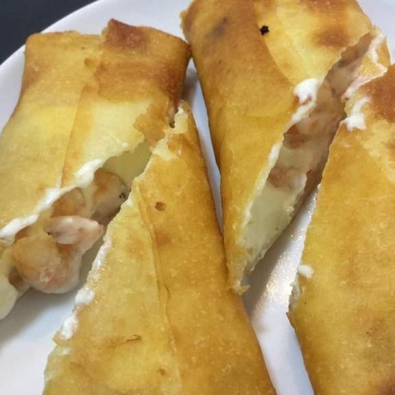Massa de harumaki recheada com camarões e cream cheese
