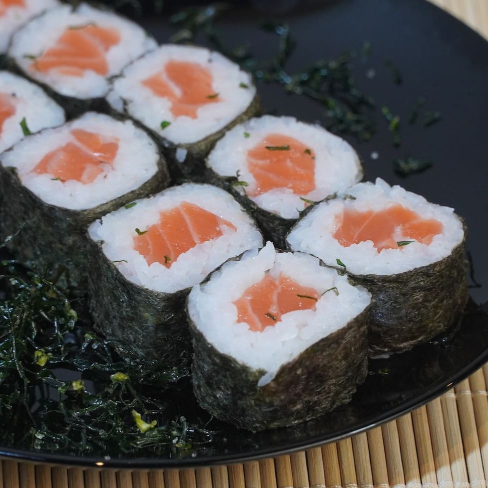 12 cariocas de salmão, 10 uramakis de salmão e 10 hossomakis de salmão