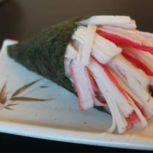 Alga, arroz com recheio de kani