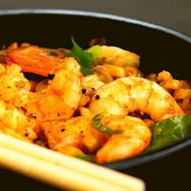 Filé de Camarão puxados com óleo de gergelim e alho, acompanhado do nosso arroz Yakimesh (arroz com cenoura, ovos, presunto e cebolinho, com temperos orientais) Acompanha batata frita.