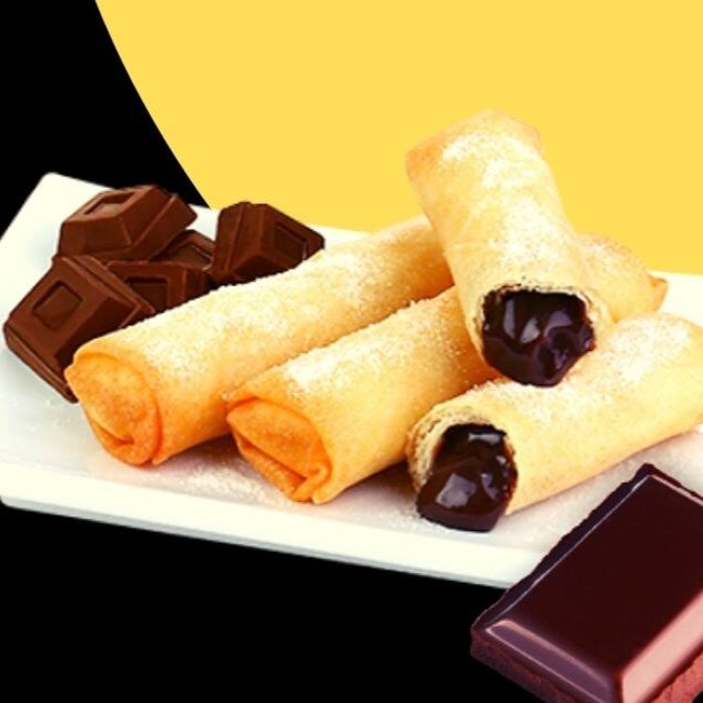 Massa oriental frita recheada com blend de chocolate 50% e chocolate meio amargo Nobre Nestlé.